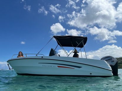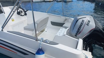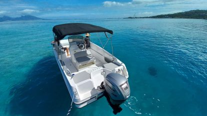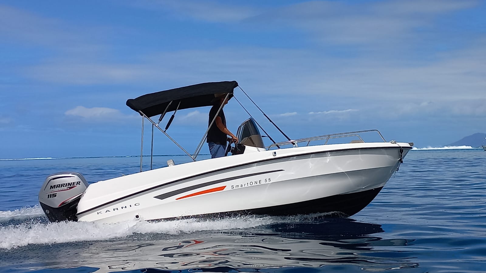 Private Boat vous propose au départ de Tahiti un bateau de 5.50 mètres de la marque KARNIC SMART 55 équipé d’un moteur MARINER de 115 cv 4T.